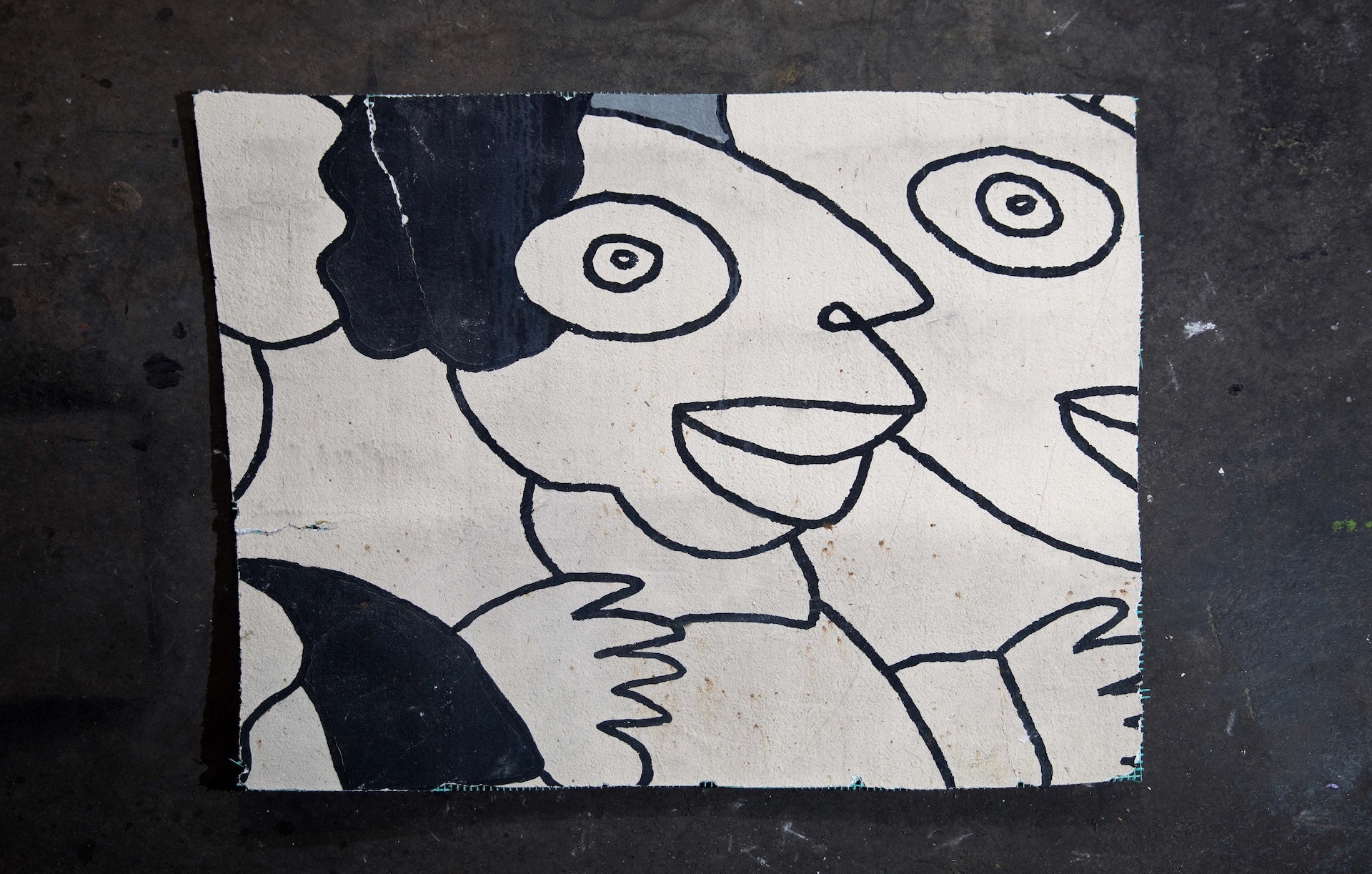 Dieses ausdrucksstarke Fragment zeigt mehrere stilisierte Gesichter in reduzierter Schwarz‑Weiß-Komposition – ein Gesichtermeer, das sofort Assoziationen an Gemeinschaft, Dialog und kollektive Bewegung weckt. Die klar konturierten Figuren, nur durch Linien gezeichnet, treten in einen stillen, aber intensiven Austausch – als hielten sie inne, um ihre Gedanken zu teilen.