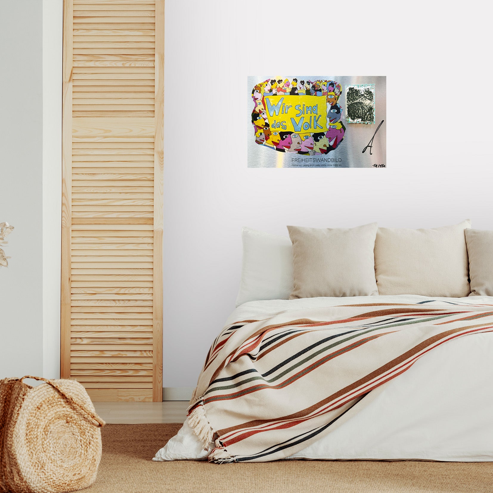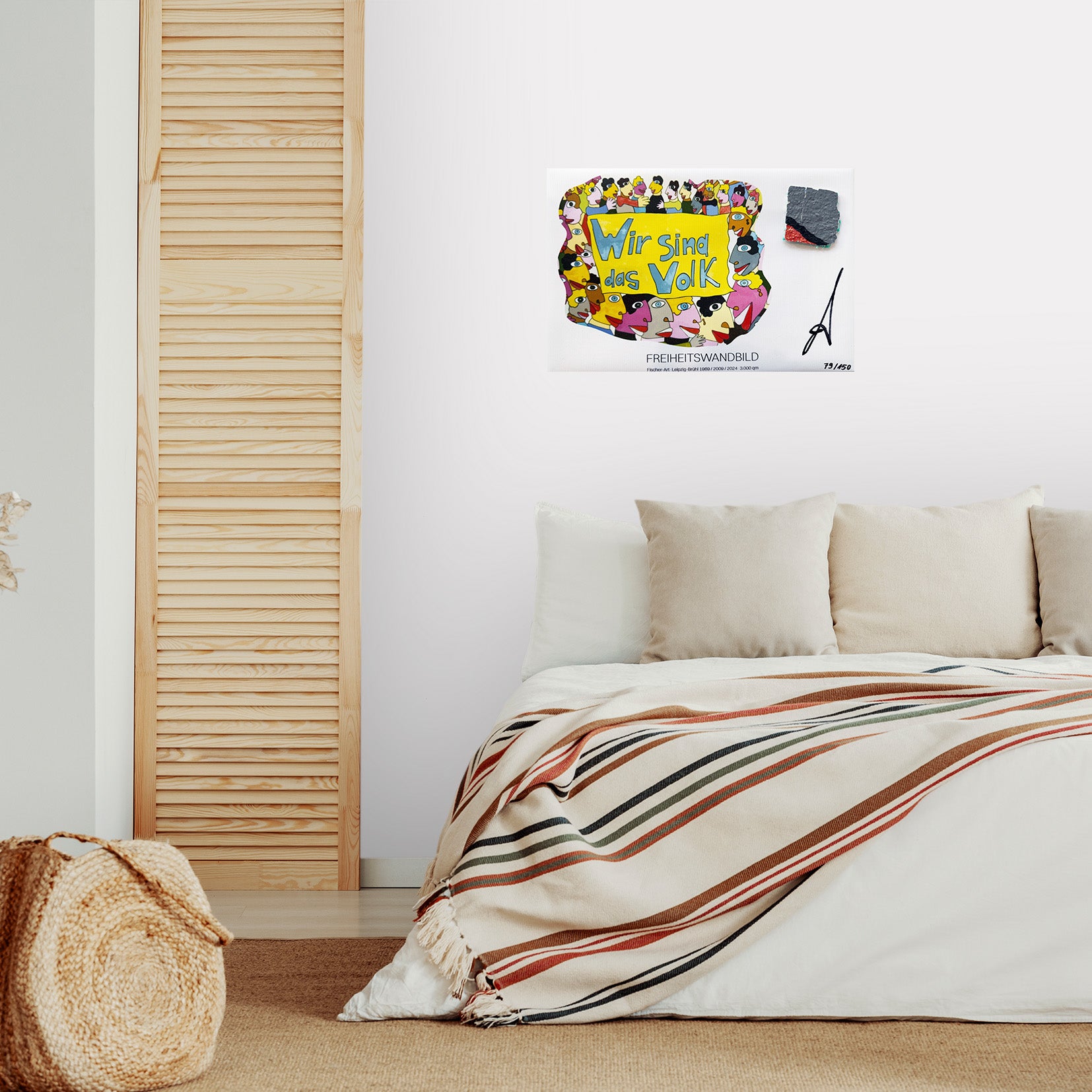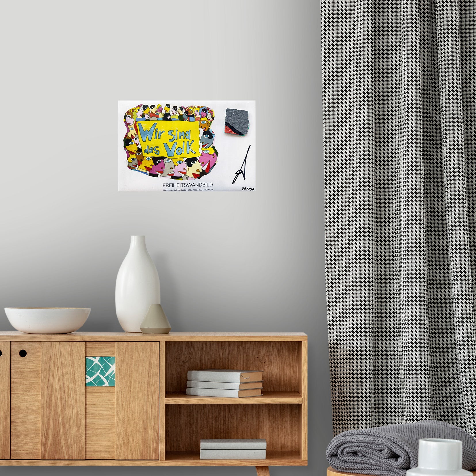 "Volksruf" ist mehr als Kunst – es ist ein Symbol für Freiheit, Veränderung und Hoffnung. Die kunstvolle Verbindung von Originalfragment und Druckmotiv macht dieses Stück zu einem einzigartigen Blickfang in Deinem Zuhause und bewahrt gleichzeitig die Geschichte der Friedlichen Revolution.
